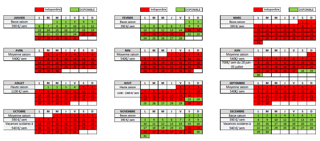 Basse saison 390 €